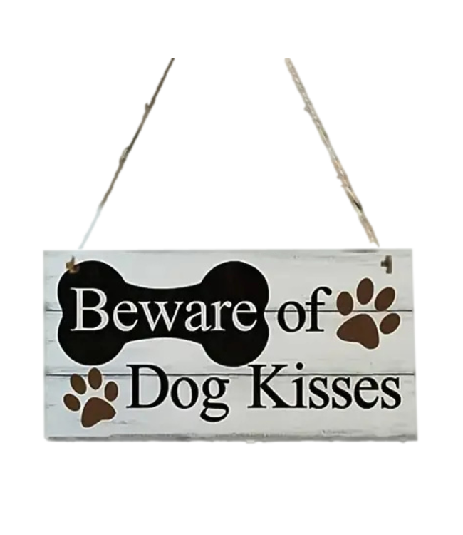 Beware of Dog Kisses Wooden Sign