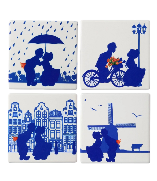 Heinen Delft Blue Kissing Couple Coasters (4pc)